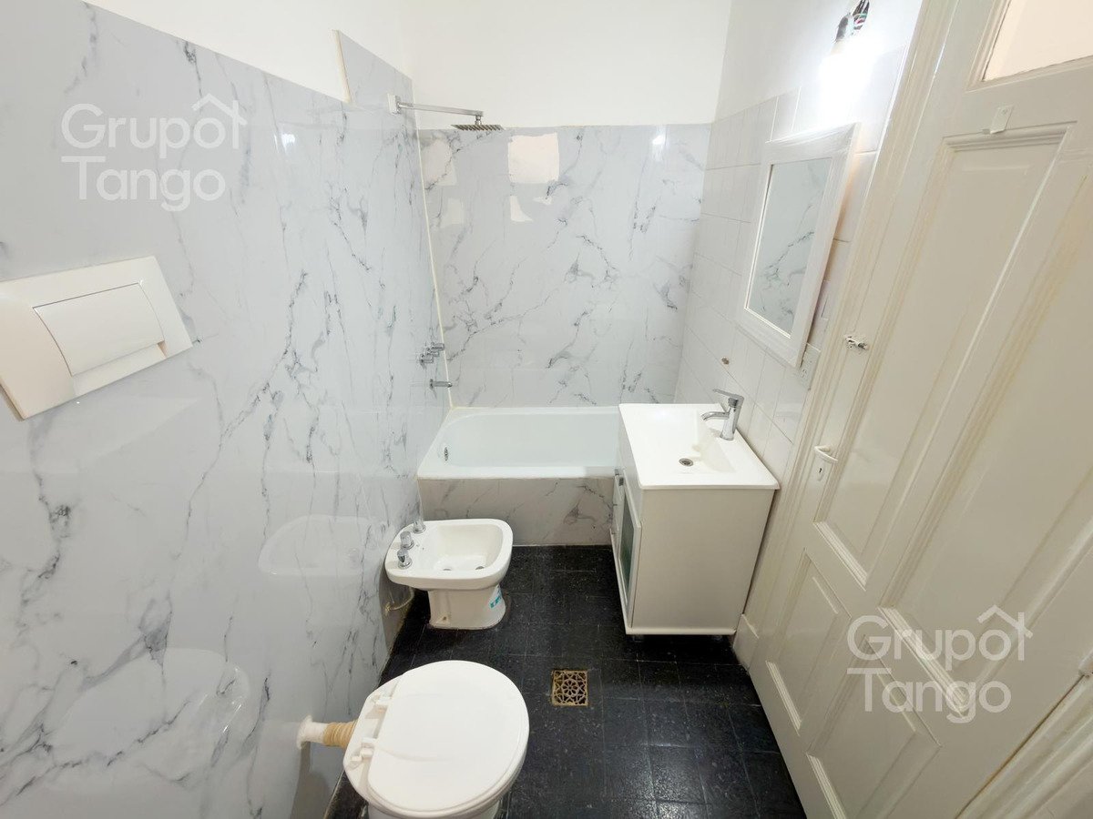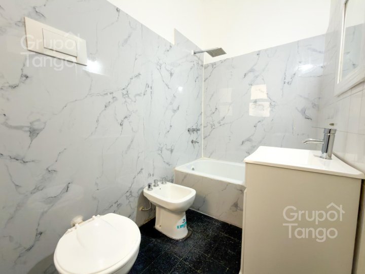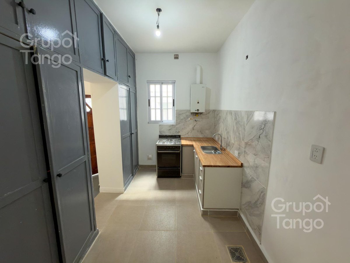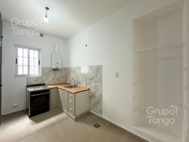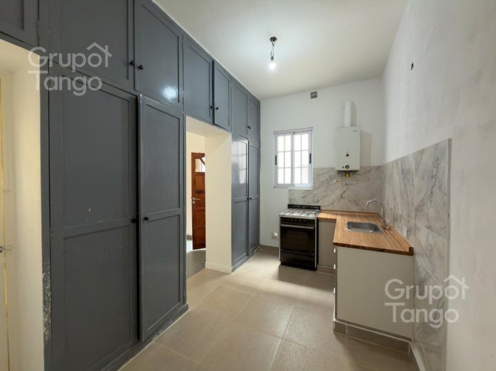 -Venta Departamento reciclado dos ambientes en planta baja. -Patio principal con sector lateral de uso exclusivo, ideal para guardado o baulera privada. -Living comedor amplio con ventana y mucha luz. -Cocina con ventana, posibilidad de usar como cocina-comedor diario con mobiliario de cocina, bajo mesada de melamina y mesada nueva. Cañerías nuevas. -Dormitorio con conexion al patio principal, da luz natural y ventilación. -Baño completo con ventana, vanitory, inodoro y bidet nuevos. -Patio pequeño con lavadero descubierto.