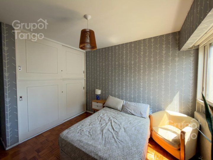Venta Departamento dos ambientes con dependencia, balcón al frente APTO CREDITO -Living comedor luminoso con salida al balcón equipado con acondicionador de aire -Cocina completa, con acceso a dependencia de servicio y toilette -Dormitorios con placard integrado (al frente) -Baño completo con bañera. -Encargado en edificio con vivienda, calefacción por losa radiante -Tres ascensores en edificio, uno de servicio.