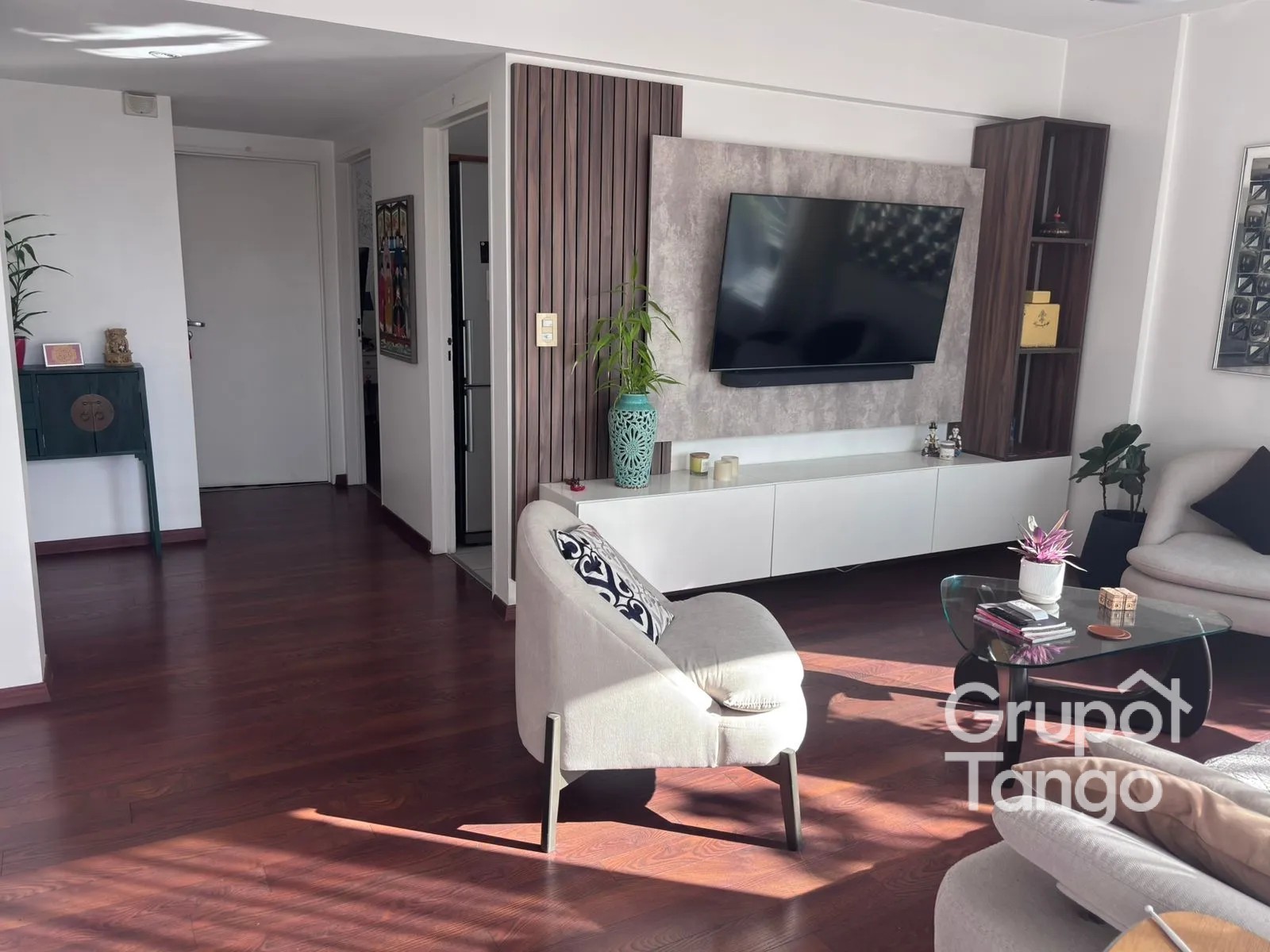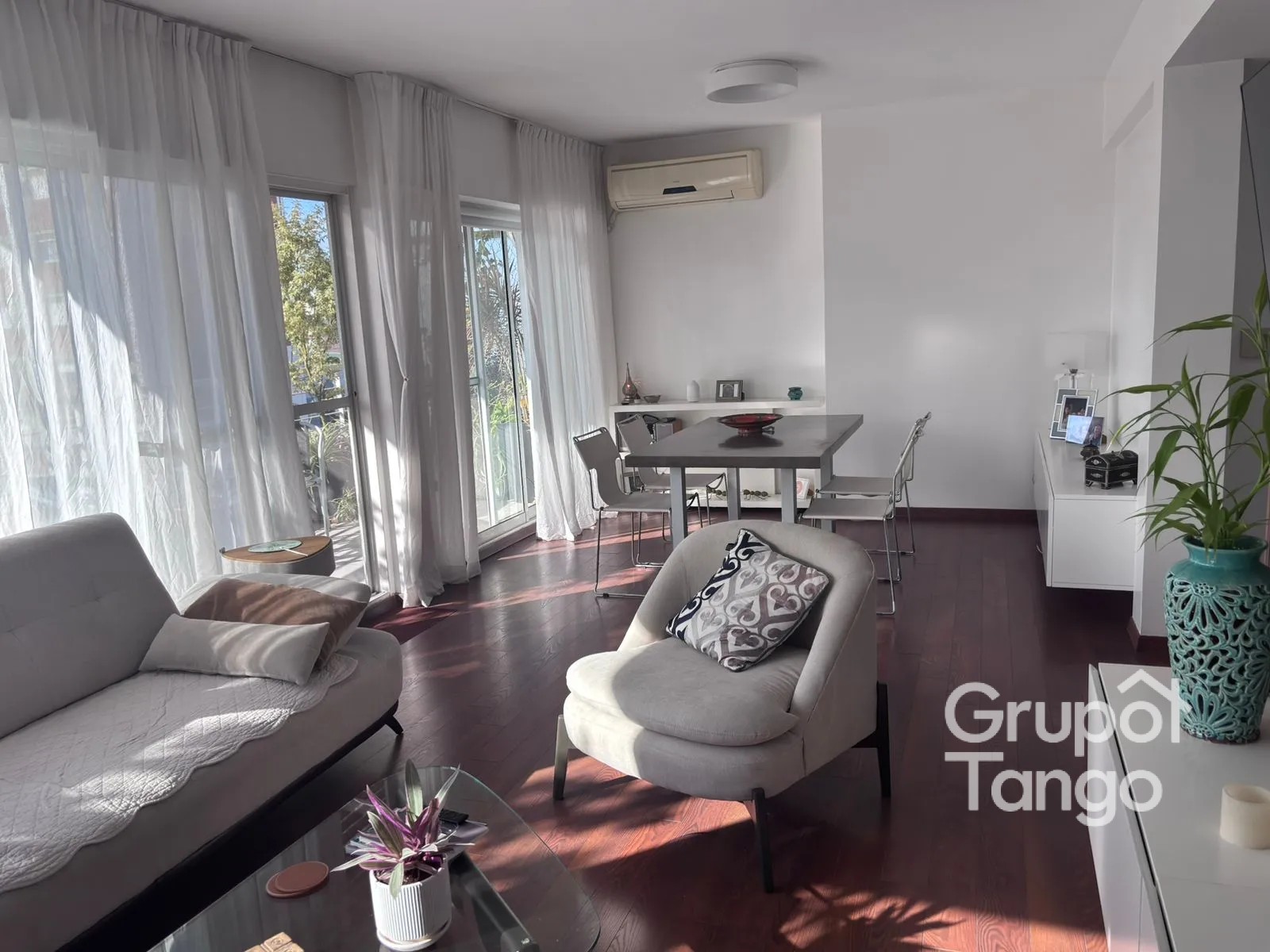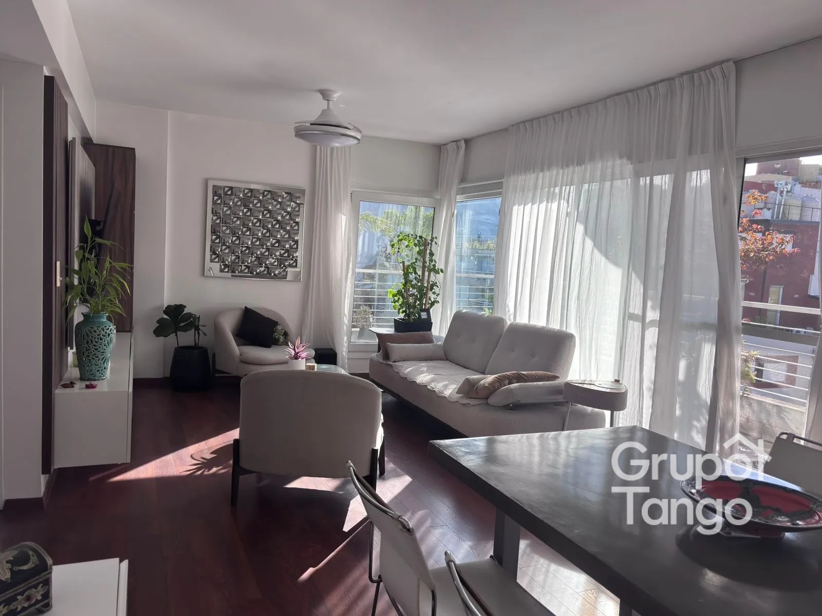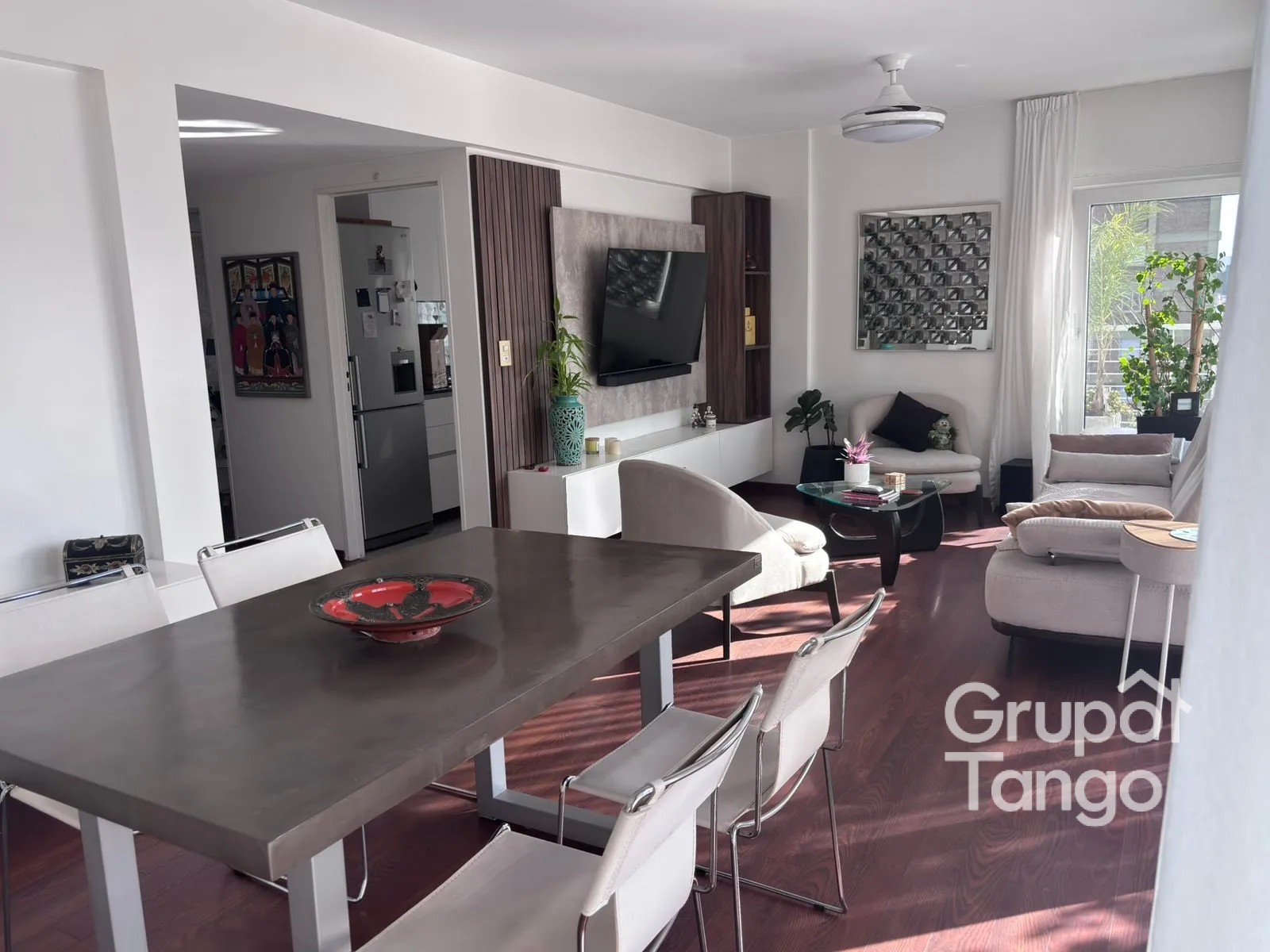 El living-comedor se integra armoniosamente con amplios ventanales que permiten acceso a un balcón exterior, aportando conexión con el entorno y generando una atmósfera agradable.