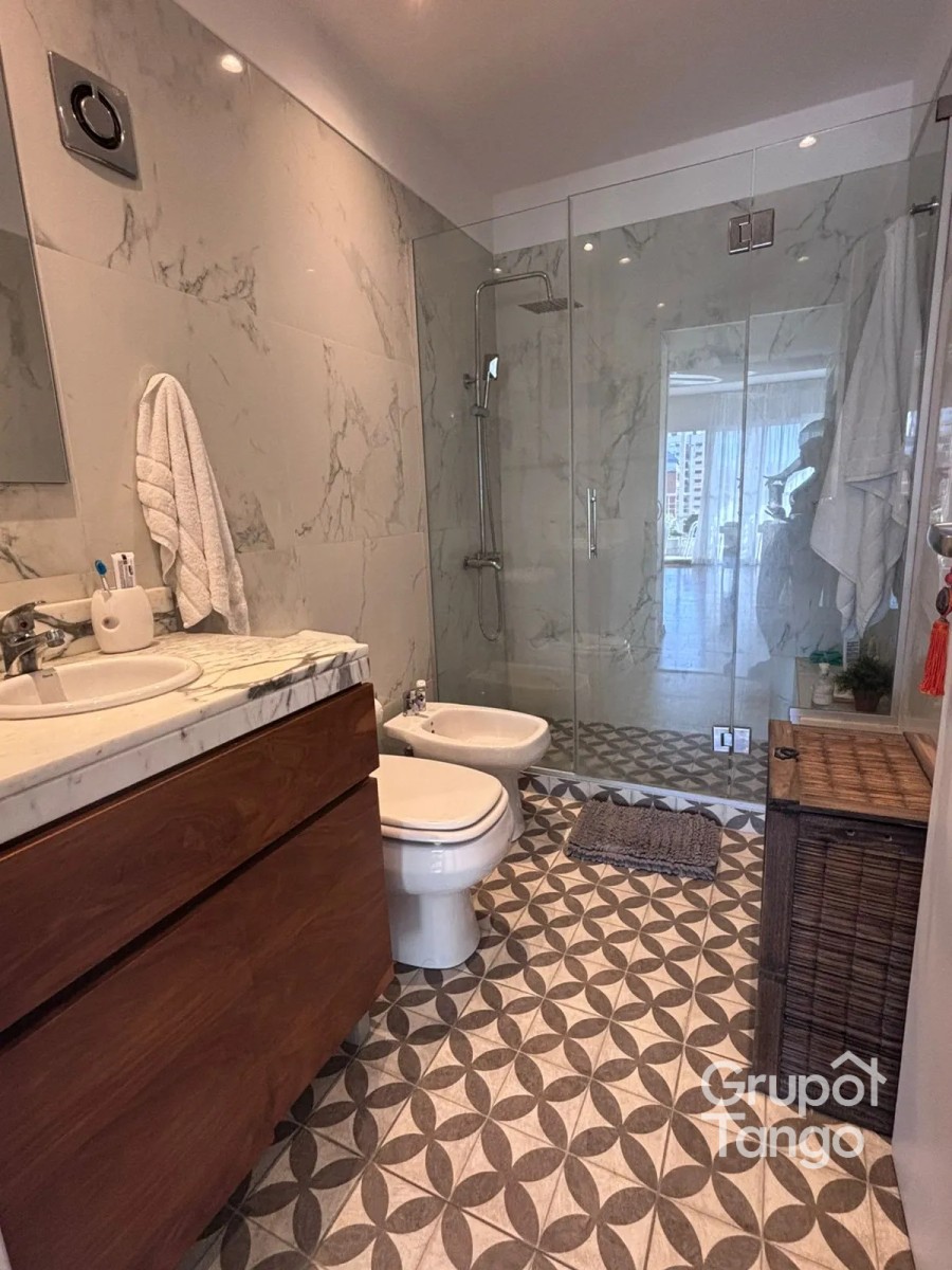 El baño está equipado con ducha y bidet, con terminaciones en cerámica.