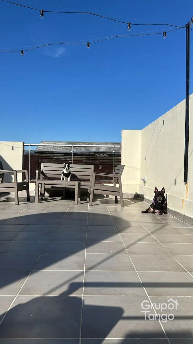En la planta alta, dos dormitorios con placard y frente espejado, segundo balcón y baño completo. El tercer nivel sorprende con una terraza propia de uso exclusivo, con parrilla, bacha y cerco verde para mayor privacidad: un sector perfecto para quincho o relax.