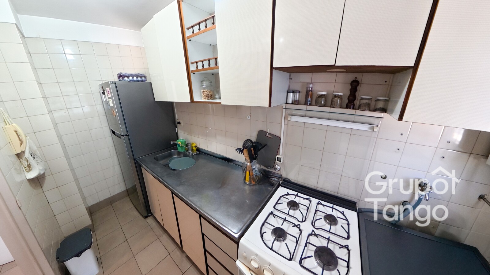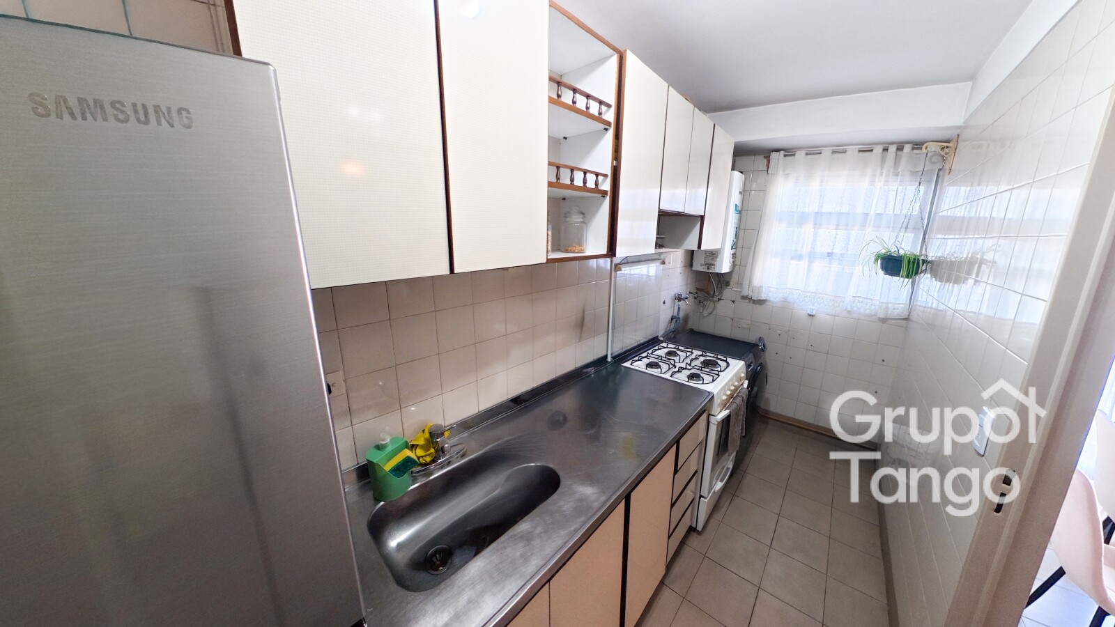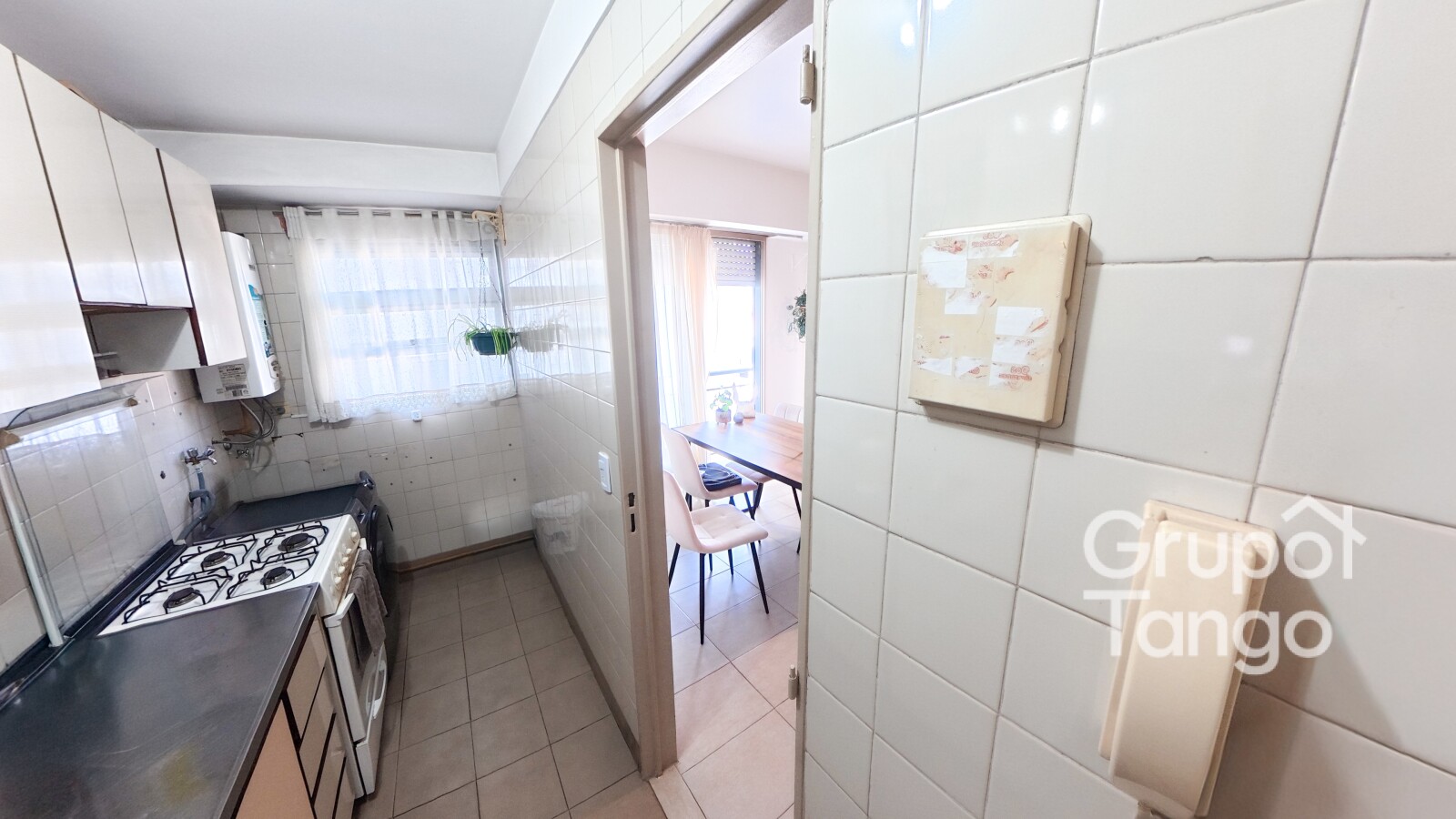 -Cocina con muebles sobre y bajo mesada, equipada con gas natural, calefón y espacio para lavadero.